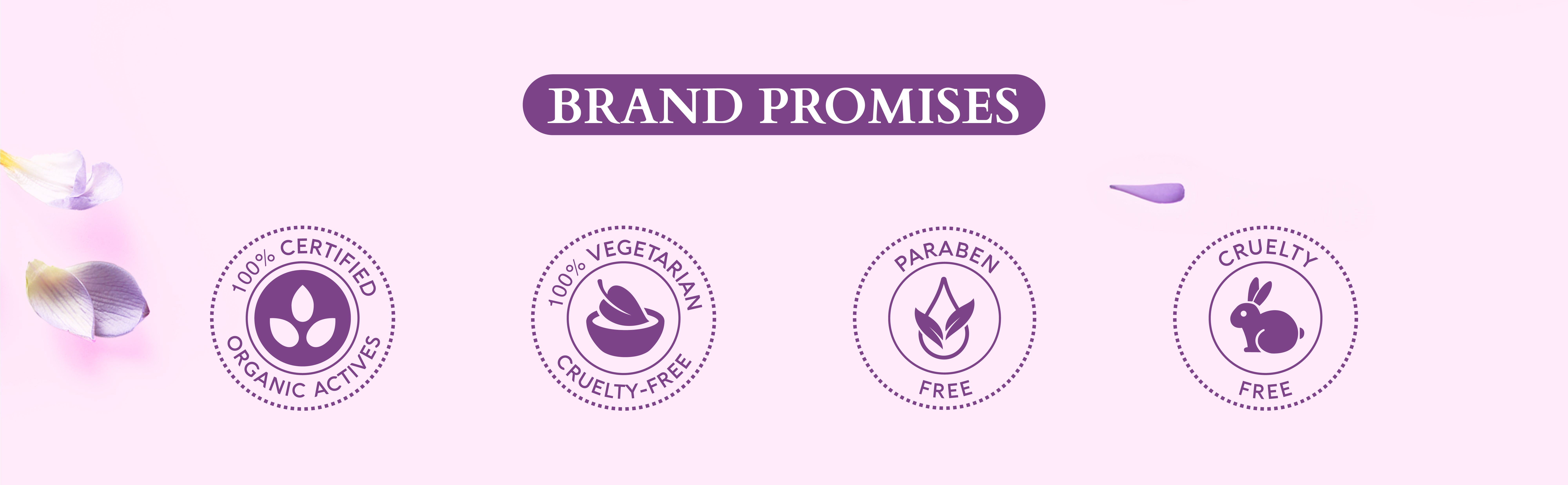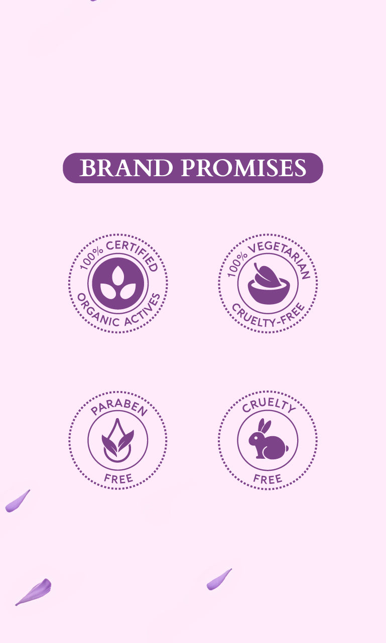 The promise of Purity:Vegan, Cruelty-free, Preservative-free, Sulphate-free, Paraben-free ; made with 100% Certified Organic Actives.