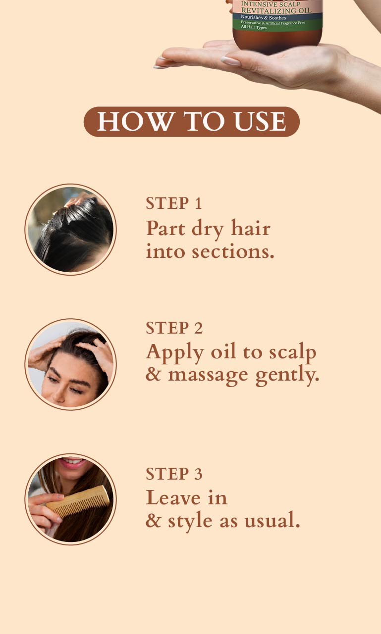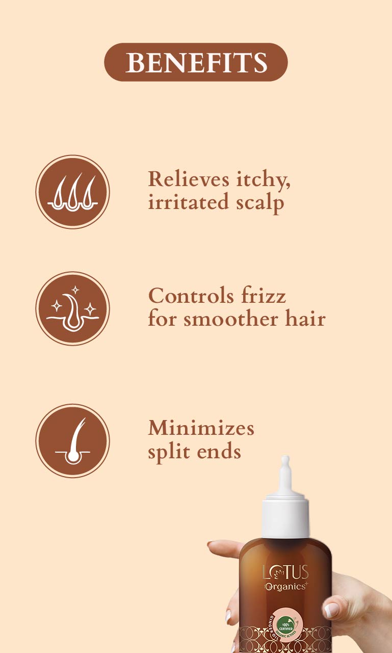 The unique herbs oil features a rich formulation of Ginger Oil, Sesame Oil, Olive Oil, Sweet Almond Oil, and extracts of Amla. The pure essential oils lull you into a stress and scalp calmative therapy, and the 100% Organic Amla extracts in our oil reduce premature pigment loss from hair or greying.Our Intensive Scalp Revitalizing Oil helps to increase the shine & swing of the hair, lock in the requisite moisture, detangle and loosen the tangled ends of hair. Regular usage of Lotus Organics+ Intensive Scalp Revitalizing Oil visibly improves scalp condition, provides deep conditioning and nourishment to hair and scalp, and leaves hair soft, dandruff-free, healthy, and lustrous!
