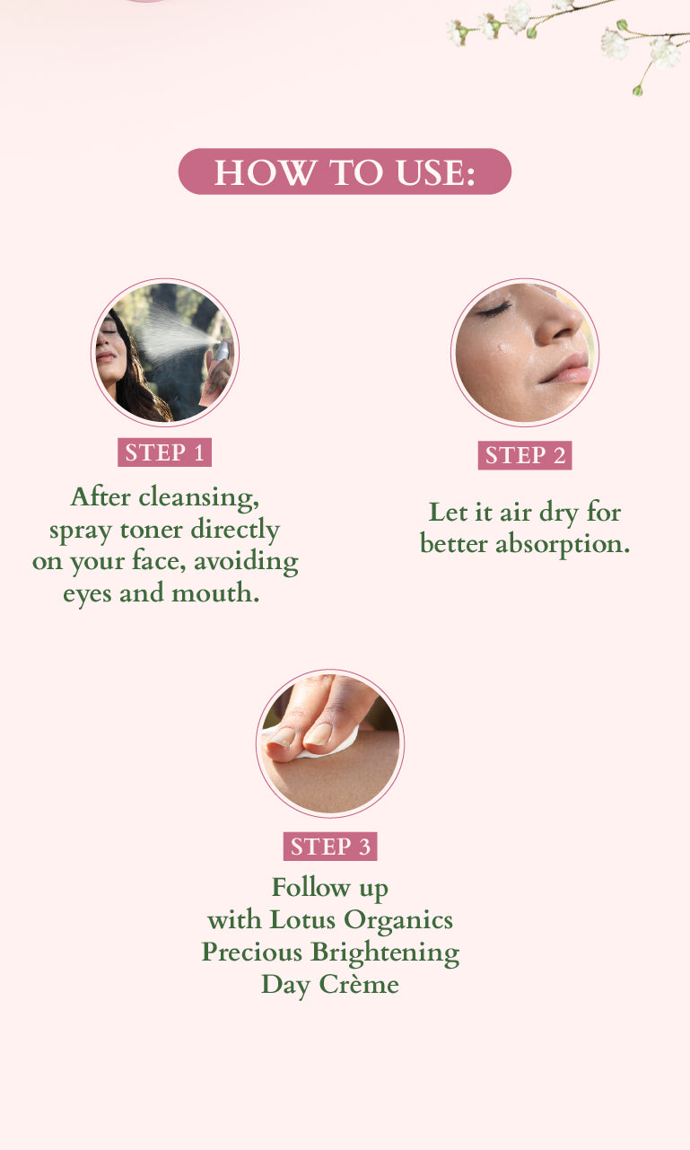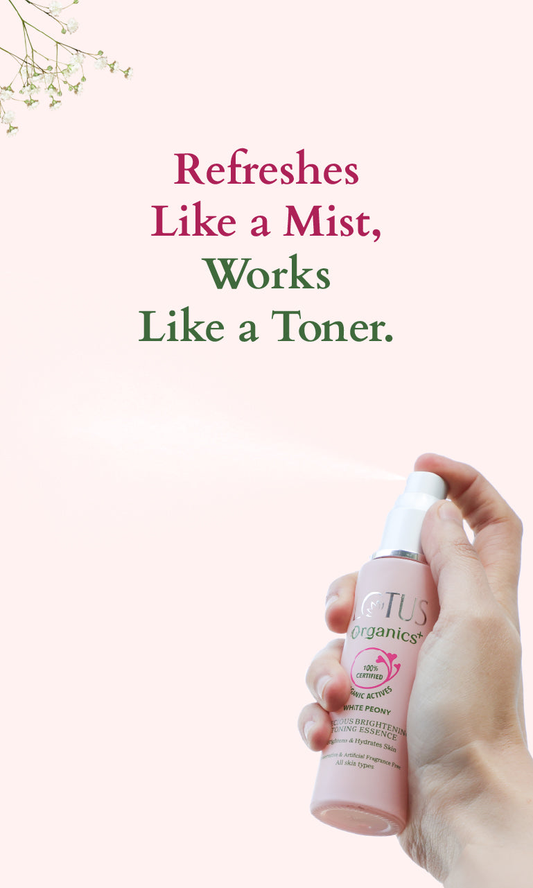 An organic facial toning mist crafted with the powerful combination of 100% Certified Organic White Peonies and Carrot Root Extract for the perfect dose of hydration, freshness and glow your skin deserves. 100% ALCOHOL-FREE skin fortifier. It helps restore your skin’s pH levels by healing it internally & leaving the skin supple and glowing!