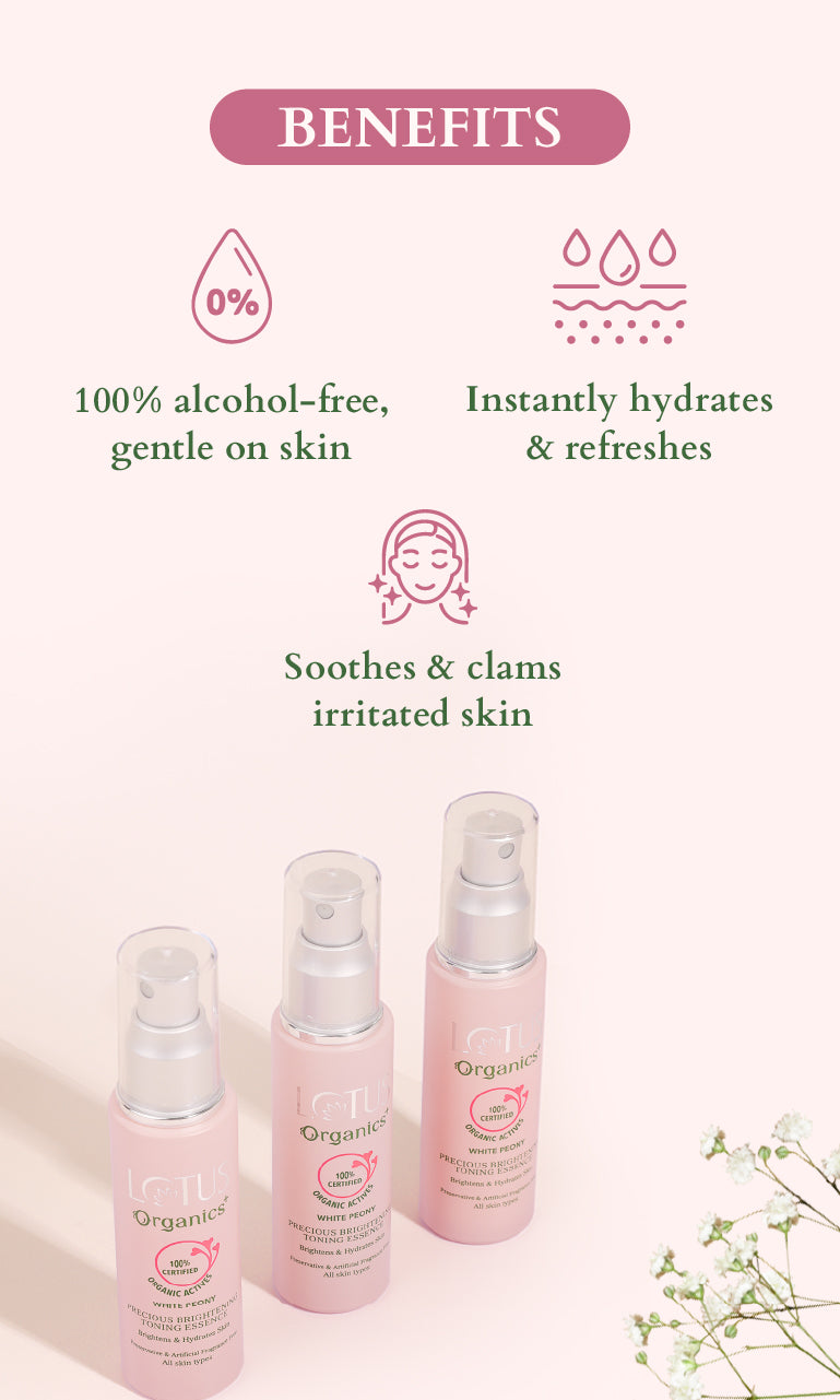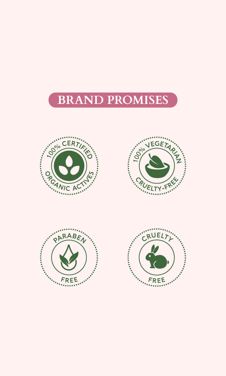The promise of Purity:Vegan, Cruelty-free, Preservative-free, Sulphate-free, Paraben-free ; made with 100% Certified Organic Actives.