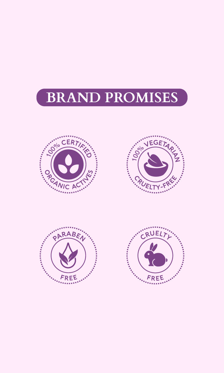The promise of Purity:Vegan, Cruelty-free, Preservative-free, Sulphate-free, Paraben-free ; made with 100% Certified Organic Actives.