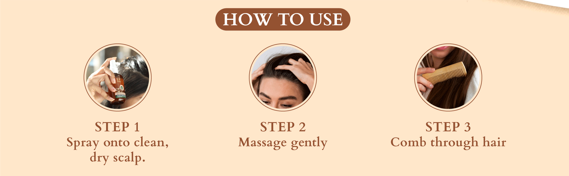 • Part clean and dry hair into sections. • Spray Intensive Scalp Revitalizing Tonic on your palm and then gently massage onto the scalp and along the lengths of the hair. • Comb as usual! For best results, use tonic at least 3 times a week. • Note: Use the hair tonic after every wash and blow-dry as a leave-in treatment.