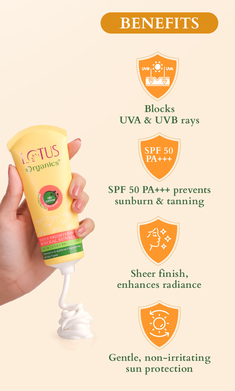 Organics+ Sheer Brightening Mineral Sunscreen SPF 50 PA+++