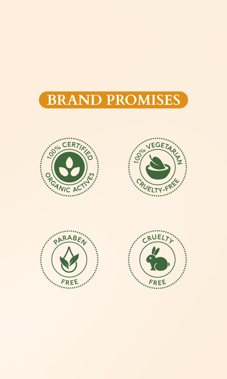 The promise of Purity:Vegan, Cruelty-free, Preservative-free, Sulphate-free, Paraben-free ; made with 100% Certified Organic Actives.