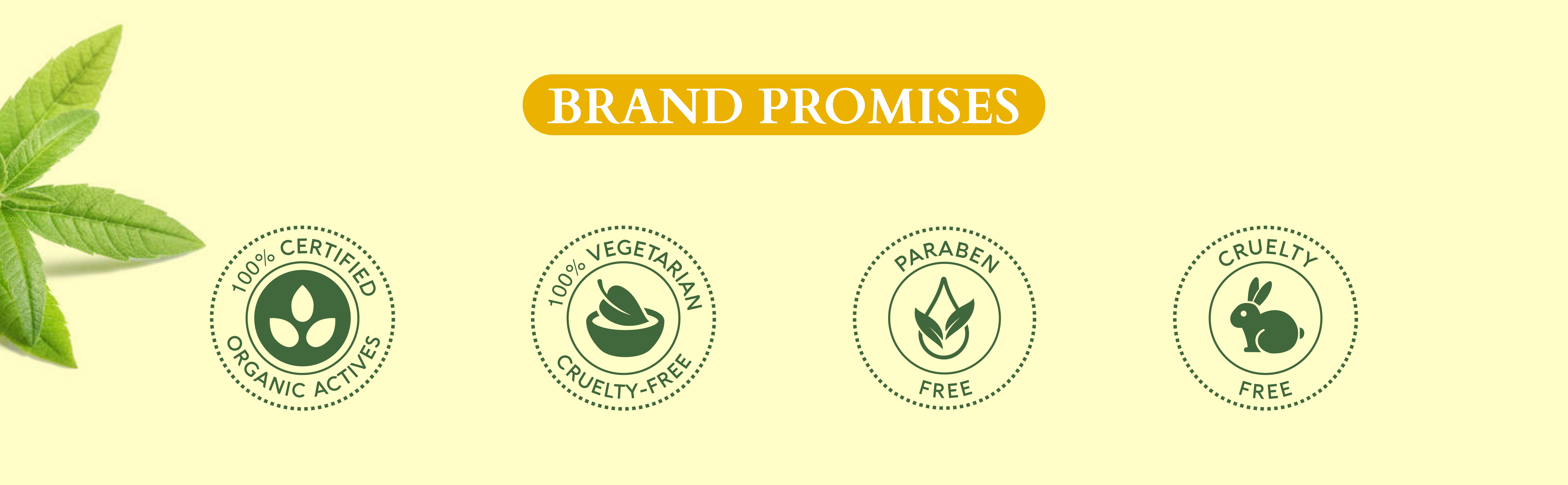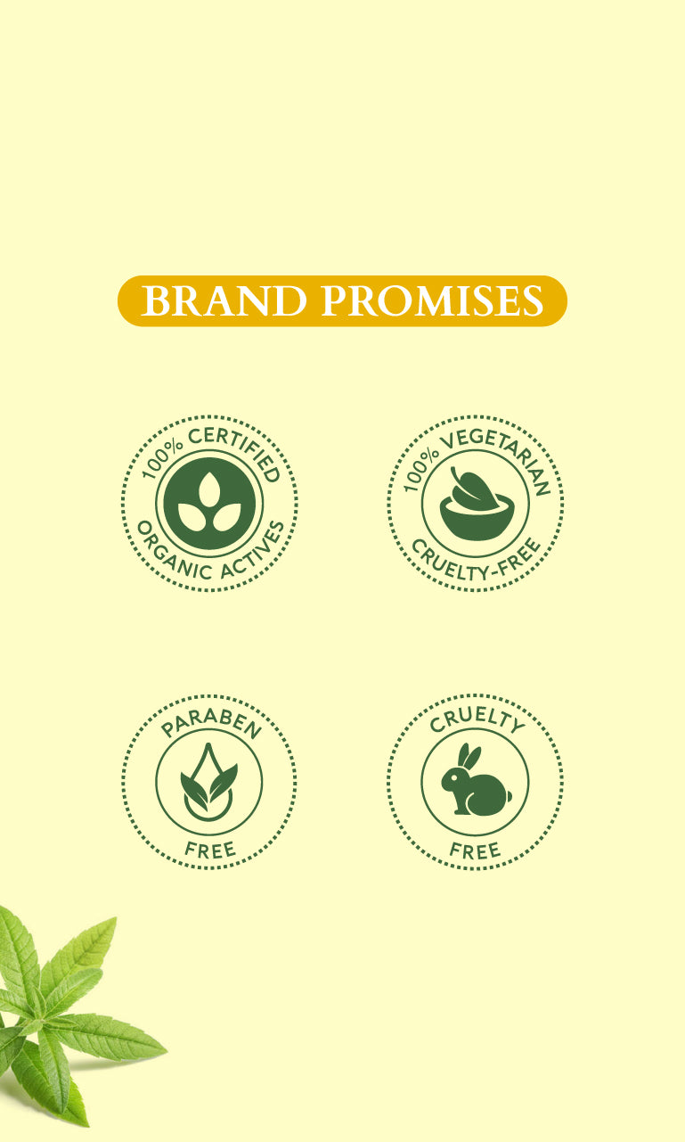 The promise of Purity:Vegan, Cruelty-free, Preservative-free, Sulphate-free, Paraben-free ; made with 100% Certified Organic Actives.